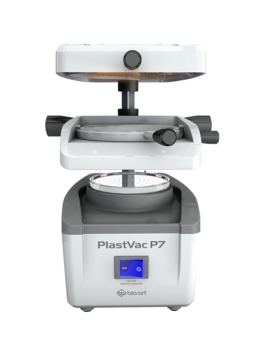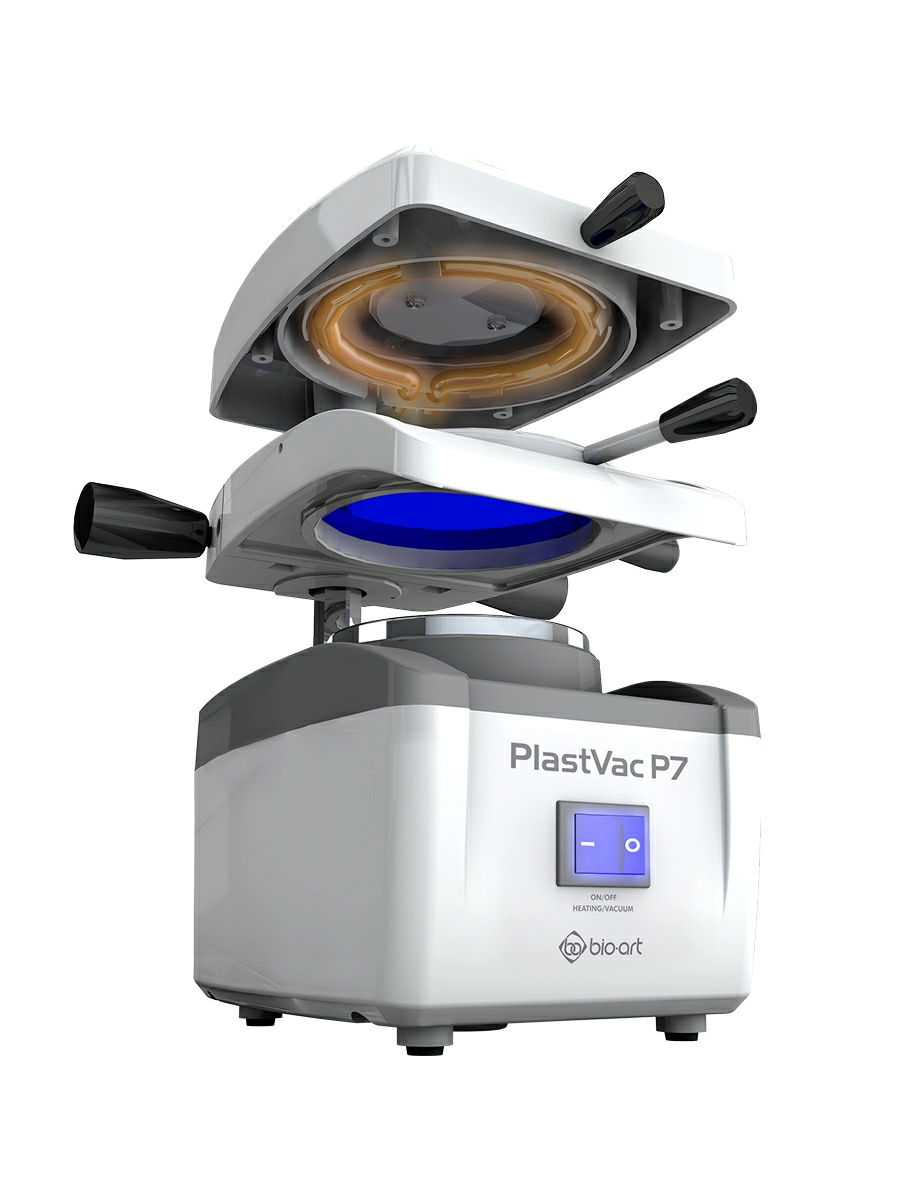 Превратите процесс создания стоматологических капп, шин и временных коронок в быстрый, точный и предсказуемый ритуал. Вакуумформер Plastvac P7 — это универсальное, интуитивно понятное и невероятно эффективное устройство, которое стало золотым стандартом для современных клиник и зуботехнических лабораторий. Компактный, но мощный, он идеально подходит для любых задач — от отбеливающих капп до сложных ортодонтических аппаратов.